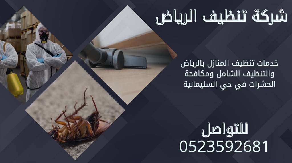 نقدم لكم خدمات التنظيف الشامل والمتميز في حي السليمانية، حيث نسعى لتلبية احتياجاتكم في تنظيف المنازل بأعلى معايير الجودة. تشمل خدماتنا التنظيف العميق لجميع أركان المنزل، بما في ذلك الأرضيات، والأسطح، والنوافذ، مما يضمن لكم بيئة نظيفة وصحية. بالإضافة إلى ذلك، توفر شركتنا خدمات مكافحة الحشرات الفعالة، حيث يستخدم فريقنا أفضل التقنيات والمبيدات الآمنة لضمان القضاء على أي آفات وبقاء منزلكم محمياً. نحن هنا لخدمتكم على مدار الساعة، فلا تترددوا في الاتصال بنا على الرقم 0523592681 للحصول على استشارة مجانية أو حجز موعد. امنحوا أنفسكم الراحة والهدوء مع خدماتنا الاحترافية.