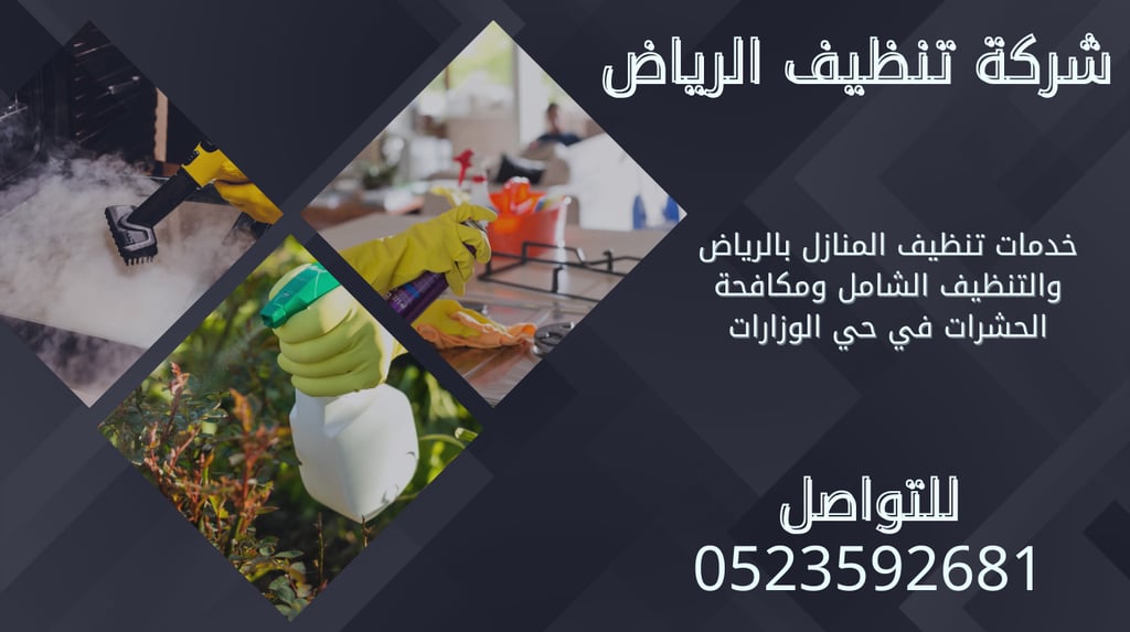 يمكنكِ الآن بسهولة الاستفادة من خدماتنا في حي الوزارات عبر الاتصال بنا على الرقم 0523592681. سواء كنتِ بحاجة إلى تنظيف عميق لمنزلك أو حلول فعالة لمكافحة الحشرات أو تنظيف المكيفات، نحن هنا لتقديم الخدمة في الوقت والمكان الذي يناسبك.