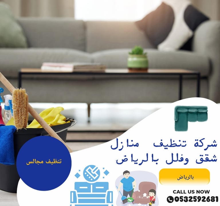 إن تنظيف المجالس في الرياض هو السر وراء المجالس الجميلة والجاهزة لاستقبال الضيوف. إذا كنت بحاجة إلى خدمة تنظيف مجالس عالية الجودة في الرياض، فشركتنا هي الخيار الأمثل. اتصل بنا اليوم لتحقيق بيت نظيف وجميل يرضيك وضيوفك.